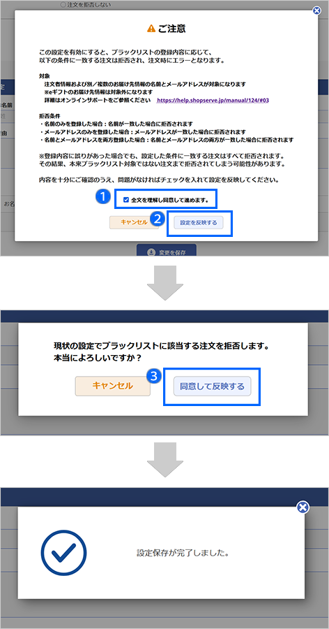 判定はブラックリストに登録した後にされた注文が対象となります。