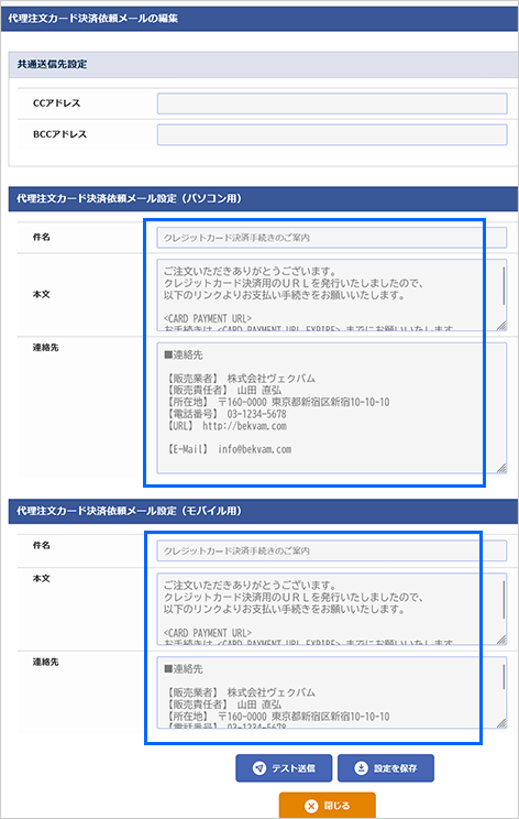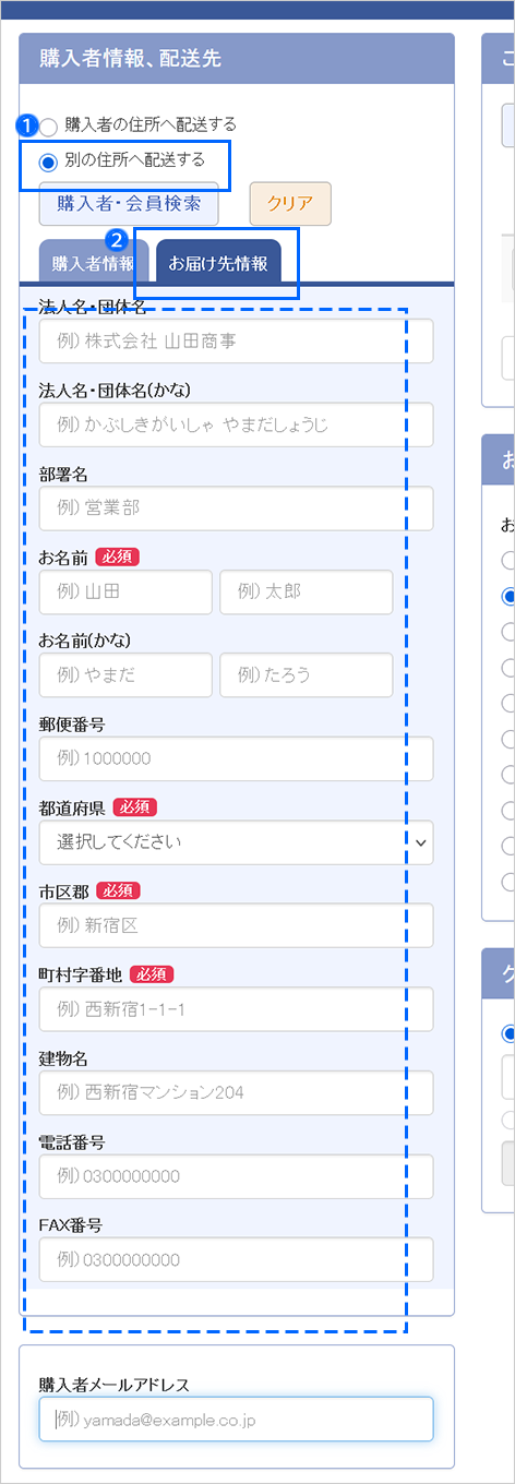「 メールアドレス 」が未入力の場合は、「 注文者メールアドレス 」に店長アドレスが反映されます。