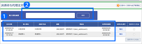 代理注文だけではなく、お客さん自身でお店ページから購入手続きした注文履歴も一覧に表示され選択できます。