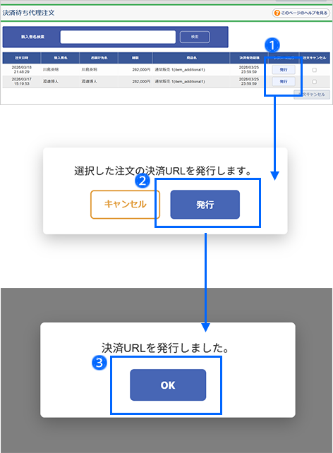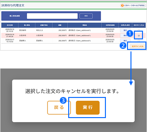 注文処理手数料は受注台帳に反映した注文のみが対象です。よって有効期限内に決済されずに注文が成立しなかった、およびキャンセルされた決済待ち代理注文には発生しません。